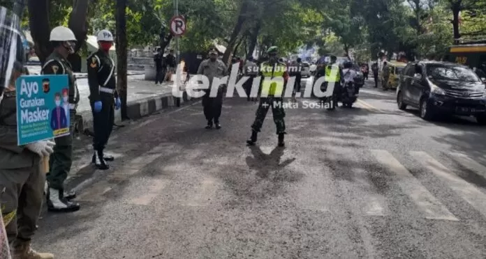 Terkini.id, Sukabumi – Koramil 2202 Palabuhanratu Kodim 0622 Kabupten Sukabumi Korem 061 Surya Kecana Kodam III Siliwangi Mabes TNI, Bersama Muspika dan unsur pemerintahan Kabupaten Sukabumi terus melakukan upaya penegakan disiplin penggunaan masker, Rabu, 21 Oktober 2020.