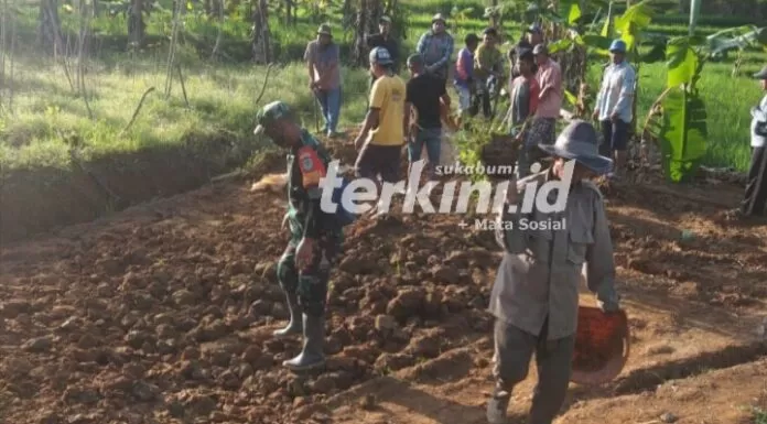 Terkini.id, Sukabumi - Pelebaran jalan akses yang menghubungkan dua kecamatan dari Desa Sirnamekar Kecamatan Tegalbuleud dan Kecamatan Kaliibunder yang selama ini harus turun ke sungai untuk terhubung ke kedua kecamatan tersebut.