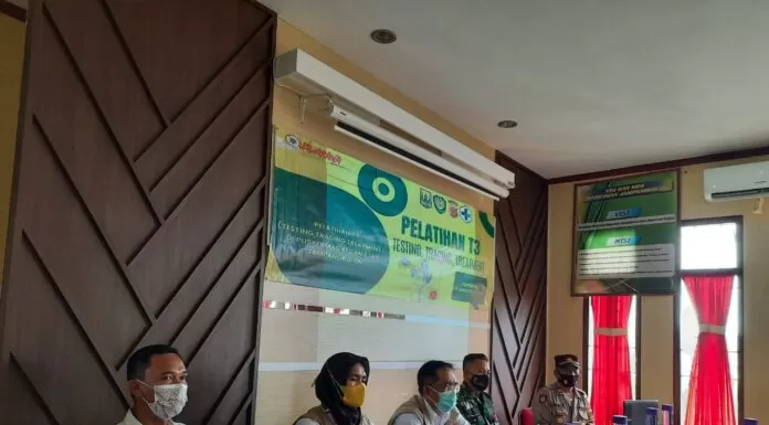 Dalam acara yang digelar di Puskesmas Jampangkulon terkait pelatihan T3 atau 3T yaitu Testing, Trasing, Trartmen.
