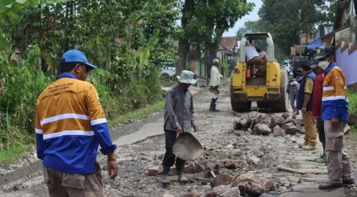 Hari ini Dinas PU Kabupaten Sukabumi sedang melakukan proses perbaikan jalan tersebut