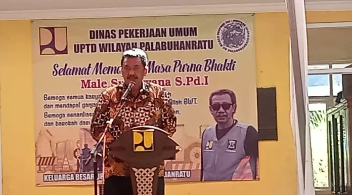 "Alhamdulilah dari BPKSDM SK pensiun saya sudah ada dan Alhamdulilah juga hari ini mungkin perpisahan dalam tugas pengabdian saya di UPTD Palabuhanratu, tapi ini bukan perpisahan segalanya. Kami atas nama UPTD Palabuhanratu mengucapkan terima kasih yang sebesar-besarnya kepada Kepala Dinas PU Kabupaten Sukabumi bersama staf. Alhamdulilah pengabdian kami sejak tahun 1985 sampai sekarang tahun 2022 memasuki masa pensiun. Saya mohon maaf apabila ada kekurangan-kekurangan dalam tugas dan mohon maaf juga kepada Mitra Cai kalau ada kesalahan atau pu kehilafan dari diri saya," ucapnya.